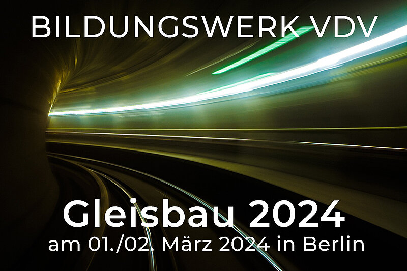 Am 01./02.03.2024 ist das Fortbildungsseminar BW-11124 „Gleisbau 2024“ als Präsenz-Veranstaltung der Fachgruppe 11 (Gleisbau) des BILDUNGSWERK VDV in Berlin geplant.