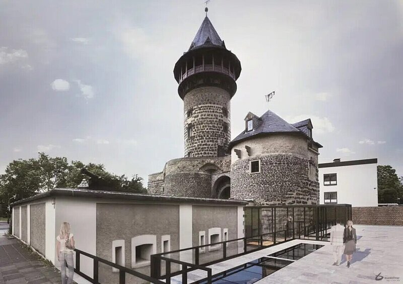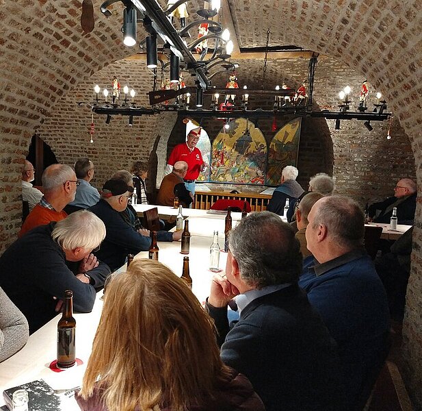 Über 20 Gäste der Festveranstaltung zur Verleihung des Goldenen Lotes kamen tags darauf zur „Ülepooz“ um sich, von Willi Noethen und seinem Burgwart-Team der Roten Funken, das historische Denkmal näher bringen zu lassen.