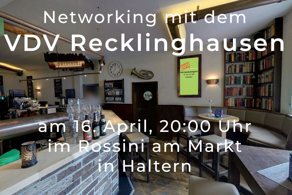 Fachthemen am Stammtisch gibt's am 16. April 2026 ab 20.00 Uhr im "Marktcafé Rossini", Markt 6, 45721 Haltern am See.