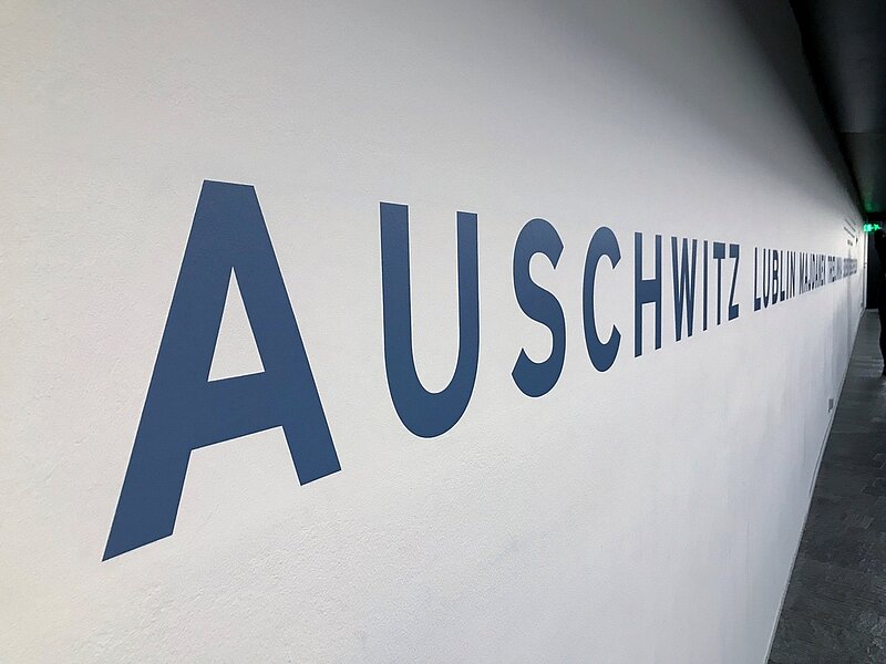 Die Achse der Kontinuität (das heutige Leben und die Religionsausübung) , die an einer hohen, zur Dauerausstellung führenden Treppe im derzeit nicht zugänglichen Obergeschoss endet, die Achse des Exils (Vertreibung) und die Achse des Holocaust (Ermordung).
