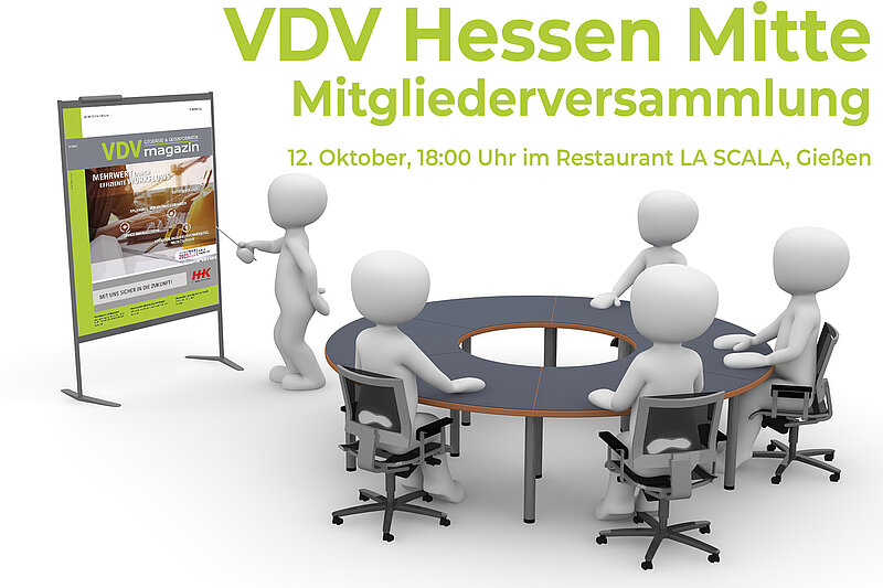 Der VDV-Bezirk Hessen-Mitte lädt hiermit satzungsgemäß seine Mitglieder zur ordentlichen Mitgliederversammlung mit Vorstandswahlen ein.