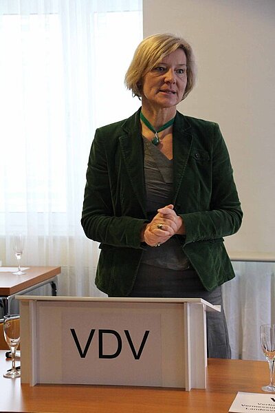 Den Reigen der Grußredner eröffnete die Landrätin Anita Schneider. Sie überbrachte auch die Grüße der Oberbürgermeisterin der Stadt Gießen, Dietlind Grabe-Bolz. Anita Schneider freute sich, die Mitglieder und Gäste in Gießen, begrüßen zu dürfen und ließ die in diesem Jahr in Gießen stattfindende Landesgartenschau nicht unerwähnt. Sie stellte ihre Verbundenheit mit den Vermessungsingenieuren heraus, die in vielen öffentlichen Bereichen tätig sind. Bedauerlich sei aber der Rückgang an Fachkräften. Mit Interesse blickte sie auf die Fachvorträge. Der Landkreis Gießen habe zum Thema Elektromobilität erste Zeichen gesetzt und Elektrofahrzeuge angeschafft, was in einigen Landkreisen Hessens noch nicht der Fall ist. Auch im lebenslangen Lernen will der Kreis Gießen Vorreiter sein. Hier bietet die Kreisvolkshochschule Gießen Kurse zum Thema E-Learning an. Ebenfalls mit Blick auf die Zukunft fügte die Landrätin hinzu, dass der Landkreis Gießen ein Klimaschutzkonzept verabschiedet hat. Noch einmal stellte Schneider die Arbeit der Ingenieure heraus. Deren Knowhow ein wichtiger Standortfaktor für Deutschland ist. Die Aufgabe aller bestehe darin, das Interesse der Kinder für technische Disziplinen zu wecken.