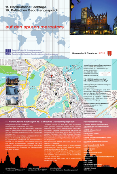 Das Motto „auf den spuren mercators“ der 11. Norddeutsche Fachtage bzw. 18. Baltische Geodätengespräche ist in diesem Jahr dem 500. Geburtstag von Gerhard Mercator gewidmet.