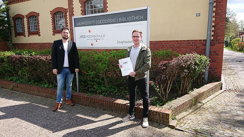 Da Herr Niemeyer weiter an der Jade Hochschule studiert, konnte der VDV-Referent der Jade Hochschule Tobias Berndt im Nachgang die Urkunde und den Buchpreis persönlich überreichen.