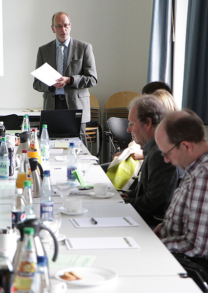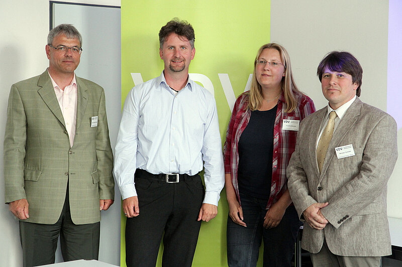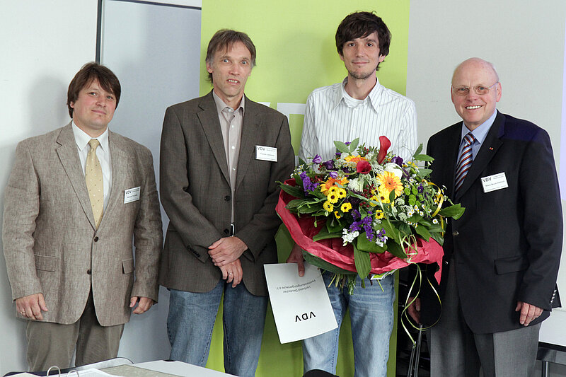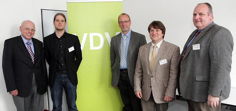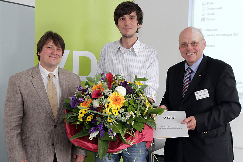 Nach der Begrüßung und den Grußworten wurde Herr M.Sc. Folkmar Bethmann für seine Masterarbeit „Entwicklung einer Monte-Carlo-Simulation zur Optimierung der 6DOFNavigation mit einem mikroskopintegrierten Einkamerasystem“ mit dem VDV-Preis 2012 durch den Vizepräsidenten Herrn Meyer-Dietrich ausgezeichnet.