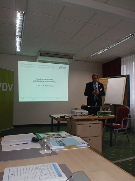 Der VDV-Vizepräsident Klaus Meyer-Dietrich übermittelte Grüße vom Präsidenten Dipl.-Ing. Wilfried Grunau, der als Gründungsmitglied des Landesverbandes Niedersachsen und ehemaliger Landesvorsitzender gern teilgenommen hätte, aber durch andere Termine leider gebunden war. Desweiteren übermittelte er Grüße vom Landesvorsitzenden Nordrhein-Westfalen Herrn Dipl.-Ing Ulf Meyer-Dietrich.