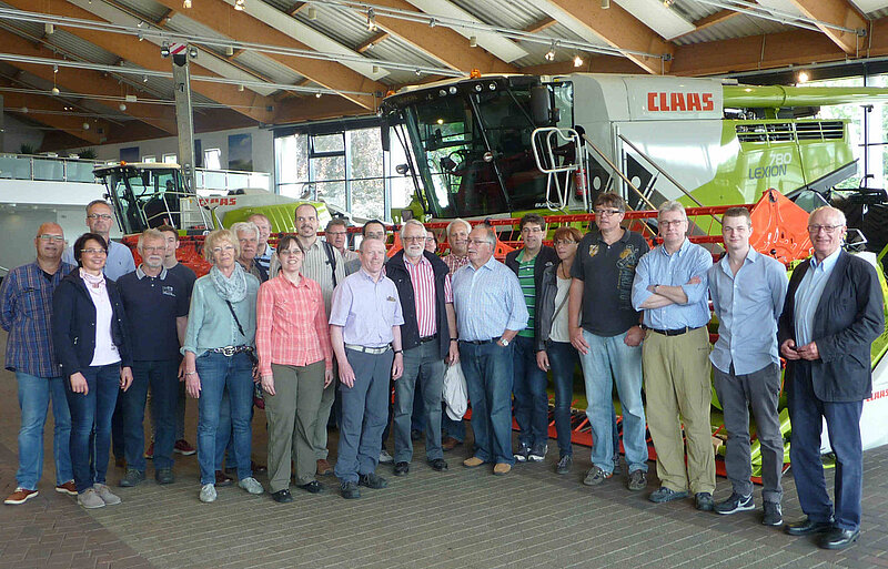 Die grün grauen Landmaschinen von CLAAS sind in der Landwirtschaft allgegenwärtig. Rund 30 Kollegen und Kolleginnen des VDV-Bezirks Bielefeld hatten am 06.05.2015 Gelegenheit im ostwestfälischen Harsewinkel das Stammwerk von CLAAS zu besichtigen. CLAAS ist weltweit präsent und bietet eine breite Produktpalette an Landmaschinen an.
