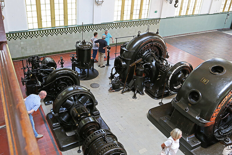 Zwei der historischen Turbinen sowie die Schaltanlagen waren beeindruckende Zeugnisse der Technik.