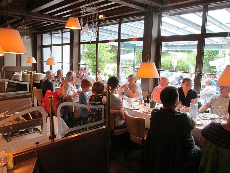 Das zweite Ziel des Tages war die Tropfsteinhöhle Wiehl. Doch bevor es hier unter die Erde ging, war eine Bergische Kaffeetafel angesagt, bei der süßes und herzhaftes im Wechsel angeboten wird. Eine Portion Waffeln mit heißen Kirchen und Schlagsahne löste die sauren Gurken mit Wurst und Käse ab.