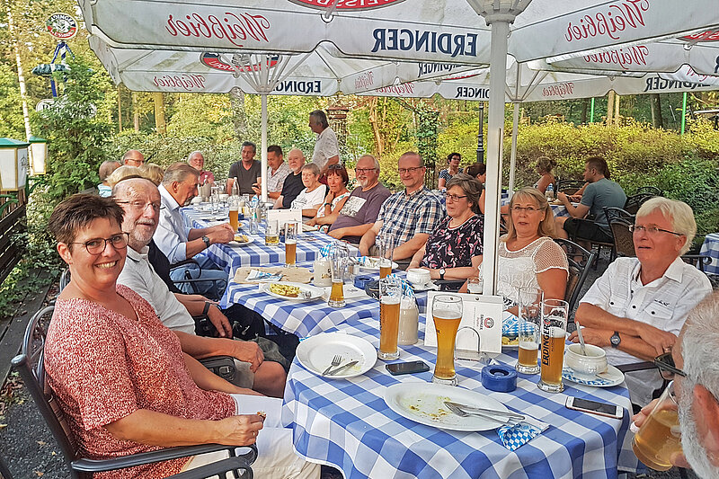 Der traditionelle Sommerstammtisch fand in diesem Jahr in der Voreifel statt. Eingeladen hatte der Vorstand nach Rheinbach in den Biergarten des Waldhotel Rheinbach. „Wir wollten den linksrheinischen Mitgliedern mal näher kommen, da unser monatliches Treffen ja seit sehr vielen Jahren auf der anderen Rheinseite stattfindet“, so der 1. Vorsitzende Ulrich Rosen.