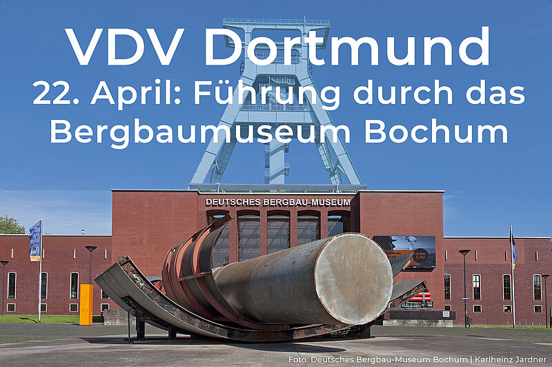 Am 22.4.2023 traf sich der VDV-Bezirk Dortmund und extra angereiste VDV-Mitglieder aus ganz NRW und Hessen, zu einer exklusiven Führung durch das Deutsche Bergbaumuseum in Bochum. Unter der guten Betreuung von Dr. Siegfried Müller, Kurator für Bergbautechnik und Lehrbeauftragter an der THGA, wurde die Besuchertruppe am Eingang des 1930 gegründeten Museums begrüßt. Im Schatten des weit sichtbaren Doppelbock- Fördergerüstes der stillgelegten Schachtanlage „Germania“ (Dortmund) mit seinen 71,4 m Höhe, das seit 1973 das Museum schmückt, wurde eine kurze Einführung in die Geschichte des Museums gegeben. Dabei ging es nicht um allgemeine Informationen, sondern im Schwerpunkt um die Problematiken, technisch-wissenschaftliche Themen mit Museumspädagogik, Brandschutz, Architektur und gelebter Ruhrgebietsnostalgie übereinzubringen.
