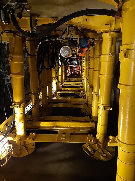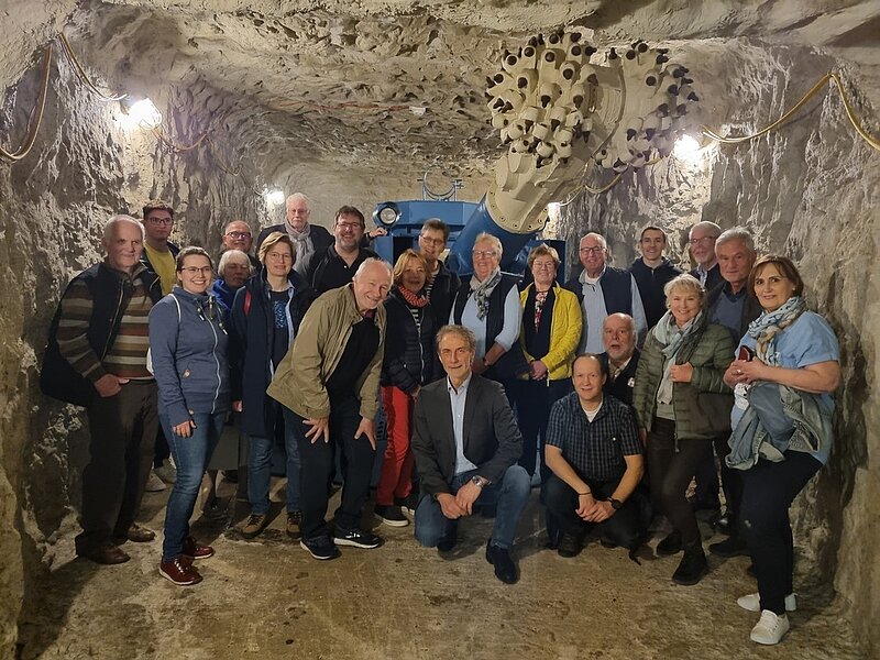 Gut gestärkt ging es weiter durch den ca. 2,5 km langen Untertagebereich. Imposante Maschinen teilweise auch mit Betriebsvorführung säumten den Weg der Besichtigung. Erst nachdem im Maschinenraum das Steigerlied gesungen wurde (mit anschließendem Schnaps) ging es wieder nach Übertage.