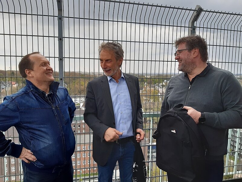 Auf dem ca. 71 m hohen Fördergerüst mit einem großartigen Weitblick über Bochum endete die Besucherführung der besonderen Art. Unser Dank gilt Dr. Müller für den interessanten und etwas anderen Blick auf das Bergbaumuseum sowie für die gute Organisation durch den VDV-Vorsitzenden Guido Baumann unterstützt durch das VDV-Mitglied Andreas Koschare.