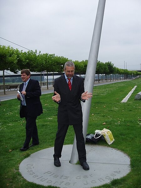 Es ist Tradition, dass die ‚Düsseldorfer Jonges’ ihre Jubiläen auch mit einem besonderen Geschenk an die Stadt und die Bürgerschaft begehen. Anlässlich seines 75jährigen Bestehens übergab der Heimatverein am 1. Dezember 2007 an der Rheinuferpromenade eine der weltweit komplexesten Sonnenuhren an Oberbürgermeister Erwin †. Das Werk wird im Register der Deutschen Gesellschaft für Chronometrie in Nürnberg unter der Kennung DGC 13999 für das Zählen der Stunden und DGC 14000 für die Angabe des Datums geführt.