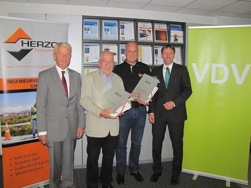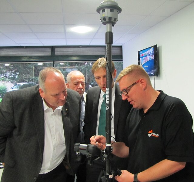 Der Bezirksvorsitzende Gerhard Vaupel erfährt regelmäßig, in welcher Fülle von interessanten Tätigkeitsfeldern unsere VDV-Kolleginnen und Kollegen arbeiten. Dies durften wir nutzen und so gab Sebastian Herzog zur Begrüßung einen Einblick in das von seinem Vater Siegfried Herzog im Jahr 1960 gegründete Unternehmen, das er seit 1990 führt. Heute sind die Herzog GmbH und Herzog & Mandt GmbH mit Sitz in Düsseldorf und Swisttal über viele Jahre im Vermessungsmarkt erfolgreich. Neben Vermessungslösungen der Firma Trimble hat sich die Produktpalette ausgeweitet und bietet in Zusammenarbeit mit namhaften Herstellern breit gefächerte Serviceleistungen an, z. B. Komplettlösungen im Bereich der Luftbildauswertung. Die Erfolgsdevise ist nach wie vor das persönliche Gespräch und die fachkundige Beratung.