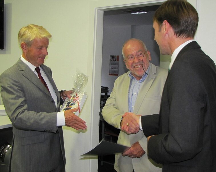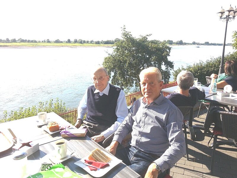 - VDV-Kollege Karl Schindler (Mitglied mit der kleinsten Mitgliedsnummer) feierte am 26. August 2015 bei guter Gesundheit seinen 90. Geburtstag. Ein paar Tage später unternahm Gerhard Vaupel mit ihm einen gemeinsamen Auto-Ausflug zu den 'Baumberger Rheinterrassen'. Bei Kaffee und Kuchen überbrachte der Bezirksvorsitzende die allerbesten Wünsche der Kolleginnen und Kollegen und ein Präsent.