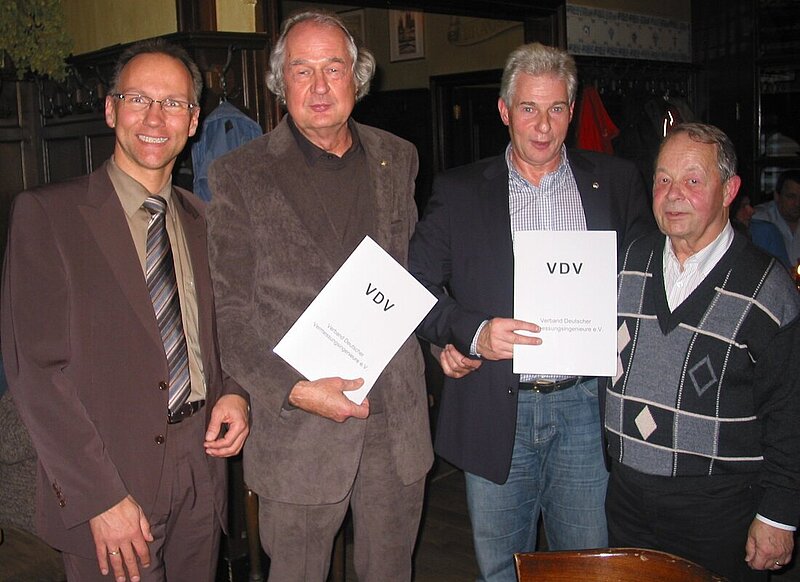 Noch eine weitere besondere Ehrung stand an diesem Abend an: Dieter Michel erhielt aus den Händen von Karsten Muth die Urkunde und die silberne Verbandsnadel mit Kranz für seine 40-jährige Mitgliedschaft im VDV.
