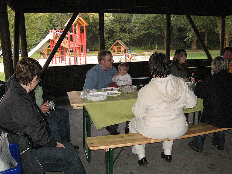 Aber von Anfang an: Der VDV-Bezirk Paderborn ludt ein in die idyllisch am Bad Lippspringer Kurwald gelegene Fischerhütte. Hier wurden in einem Vortrag die Grundlagen für die moderne Schatzsuche "Geocaching" bei den Anwesenden gelegt. Bei Kaffee und Kuchen hörten 22 Kollegen und Gäste, was den Vortragenden an diesem Hobby begeistert. Als dann die eingewiesenen vier Gruppen auf ihre individuell zusammengestellte "Cache-Route" geschickt wurden, ging kurz darauf der Himmel auf und ließ reichlich Regen auf die Suchenden herabfallen! R.-G.Siekmann-Böhm, der in der Nähe des Zielortes den abendlichen Grillabschluss vorbereitete, befürchtete das Schlimmste für die Motivation unter den Neucachern. Jedoch weit gefehlt: Obwohl alle Beteiligten durchnässt am Ziel ankamen, schienen sie durchweg zufrieden und begeistert von dieser neuen Freizeitbeschäftigung - hatten doch alle mindestens einen "Schatz" gefunden und somit ihr persönliches Erfolgserlebnis! So wurde nach ein paar Würstchen und Getränken teilweise weitergesucht, um auch den letzten in der Nähe liegenden Cache noch zu heben.