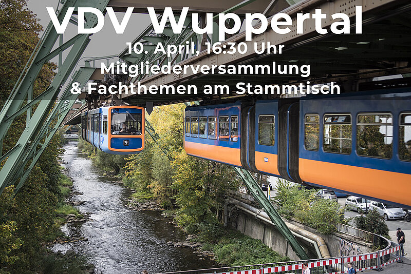 Für den 10. April um 16:30 Uhr lädt der Bezirksvorstand alle Mitglieder des VDV-Bezirks Wuppertal zur 26. Mitgliederversammlung des VDV Bezirks Wuppertal.