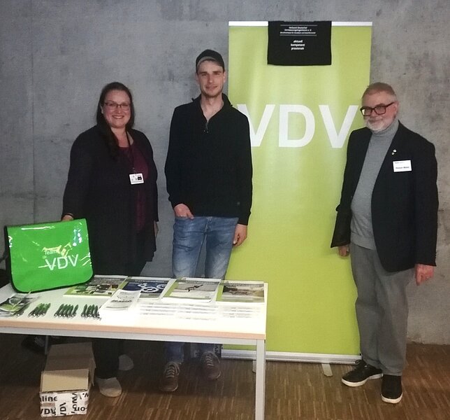 Bei der 25. Konferenz der Geodäsie-Studierenden (KonGeoS) in Würzburg war auch der VDV-Bezirk Bayern-Nord am 25. Oktober 2024 mit einem Infostand in der THWS vertreten. Ilona Schwarzer, Dr. Lukas Hart und Reiner Maier informierten über den VDV, verteilten Flyer, Werbeartikel und Exemplare des VDVmagazin und gaben Antworten auf Fragen der Studierenden.