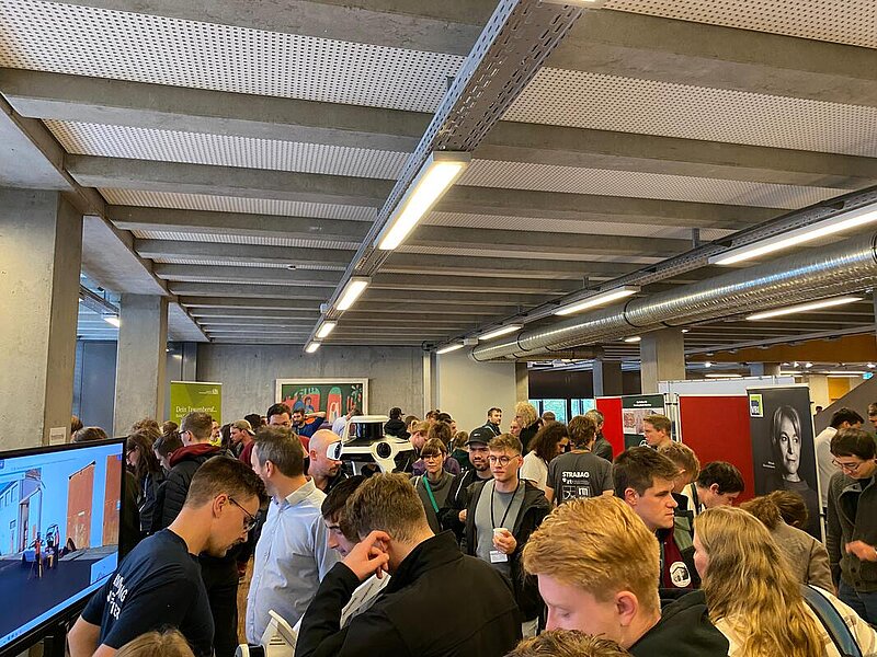 Der Freitag begann mit einem ausgiebigen Frühstück, bevor die Fachexkursionen starteten. Zu den Exkursionszielen gehörten das Luftbildarchiv des BayernLAB, das Zentrum für Telematik, die Waldflurbereinigung, die Wenzel Group AG, die Wohnanlage Lichtblick, das Wasserkraftwerk Langenprozelten sowie eine Überraschungsexkursion. Jede Exkursion bot den Teilnehmenden wertvolle Einblicke in verschiedene Bereiche der Geodäsie und angrenzende Themenfelder. Am Nachmittag fand an der Hochschule das Ausstellerfoyer statt, wo sich zahlreiche Berufsverbände und Unternehmen präsentierten. Hier hatten die Studierenden die Möglichkeit, sich über Karrieremöglichkeiten zu informieren und Kontakte für ihre berufliche Zukunft zu knüpfen. Parallel dazu wurden Fachvorträge zu Themen wie „Vom Flug zur Erkenntnis“ (ESRI), die Vermessungsarbeit entlang der Neubaustrecke Stuttgart-Ulm oder die Analyse von Luftbilddaten aus dem Zweiten Weltkrieg zur Blindgängerdetektion, die Vermessung eine Industrieareals und Fernerkundung/Erdbeobachtung: Wie und wo wir in Deutschland wohnen, -gehalten. Der Abend bot Gelegenheit für individuelle Aktivitäten und ermöglichte den Studierenden, weitere Kontakte zu knüpfen und die kulturelle Vielfalt Würzburgs zu erleben.