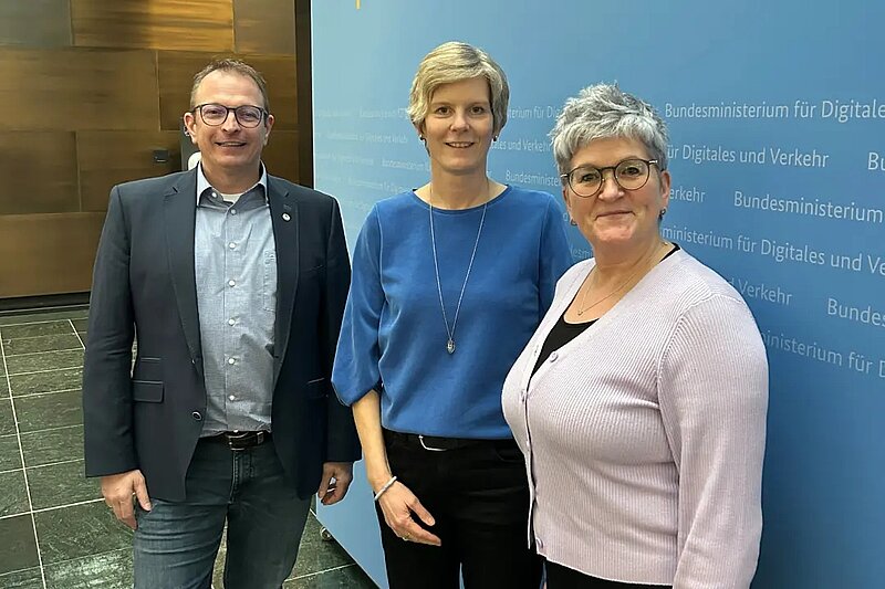 Am 26. Februar 2025 fand beim Bundesministerium für Digitales und Ver-kehr in Berlin das „Einmal im Jahr“ – Gespräch zwischen dem Vorstand des IWSV und der Abteilungsleiterin Wasserstraßen/Schifffahrt (WS), Frau Dr. Mellwig statt. Der IWSV-Vorstand war vertreten durch die Bundesvorsitzende, Dipl.-Ing. Stefanie von Einem, und den stellvertretenden Bundesvorsitzenden, Dipl.-Ing. Sven Wennekamp.