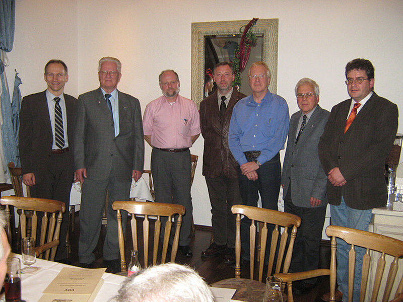 von links: Dipl.-Ing. Karsten Muth (Landesvorsitzender NRW); Dipl.-Ing. Dietrich Schäper (50 Jahre ); Dipl.-Ing. Klaus Schwiering ( 25 Jahre ) Dipl.-Ing. Franz-Josef Feller (25 Jahre); Dipl.-Ing.Hans-Leo Signerski( 40 Jahre ); Reinhold Spriwald (40 Jahre); Dipl.-Ing. Christian Kellers (Bezirksvorsitzender)