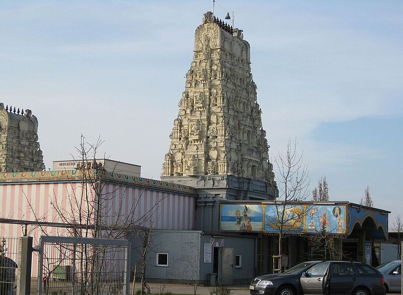 er Hauptpriester Sri Paskaran kam 1985 als Bürgerkriegsflüchtling nach Deutschland. Er richtete zunächst in einem Keller eines Mietshauses und später in einer alten Kegelbahn kleine Andachtsräume ein. Zwischen 1999 und 2002 entstand schließlich die – im Übrigen ausschließlich aus Spendengeldern finanzierte – Tempelanlage im Industriegebiet in Hamm-Uentrop.