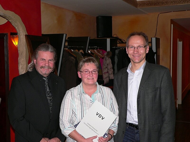 Nach dem Kinobesuch haben wir uns zum gemeinsamen Abendessen gegenüber dem Kino im Lokal „Al Howara“ eingefunden. Hier wurde nach dem köstlichen Essen die Jubilarin Frau Sibylle Menzel durch den Landesvorsitzenden Karsten Muth für 25-jährige Mitgliedschaft im VDV geehrt. Der Abend konnte bei entspannten Gesprächen und Rückblicken auf das sich dem Ende neigende Jahr zufrieden beendet werden.