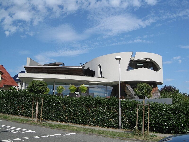 Nach dieser kurzweiligen Führung – die eingeplante Zeit war schon lange überschritten – trafen wir uns mit dem Markscheider Uwe Mathes vor dem Büro seines Bruders, dem ÖbVI Jörg Mathes. Nach der Begrüßung und der neuen Zeitplanung haben wir das ÖbVI Büro besichtigen können. Jörg Mathes führte uns durch sein Büro, das mit zurzeit 35 Bediensteten zu einem der größeren Vermessungsbüros in Deutschland zählt. Er stellte uns seine aktuellen und bereits durchgeführten Aufträge vor und erklärte uns, mit welchem Aufwand er die Kundenakquise ausführt, um sein Büro wirtschaftlich führen zu können. Nach dem anschließenden Mittagessen besichtigten wir die Privathäuser der Brüder Mathes in Braunfels, die von dem Architekten Peter Gronych entworfen worden sind. Diese Häuser sind so außergewöhnlich geplant und gebaut, dass die Besichtigung schon als Highlight gelten darf.