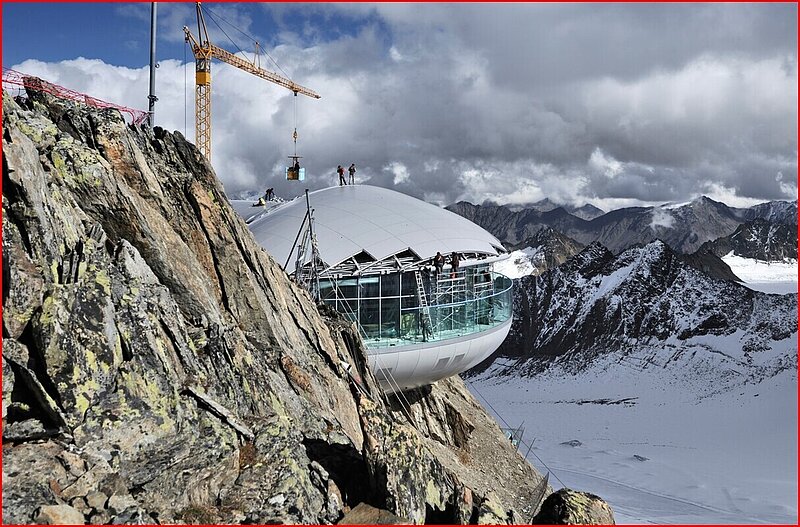 Was tun Sie aber, wenn sie sich auf einer Felsspitze befinden, die 3.440 m hoch in den Ötztaler Alpen liegt, ohnehin kaum Platz bietet und zusätzlich noch bebaut werden soll?