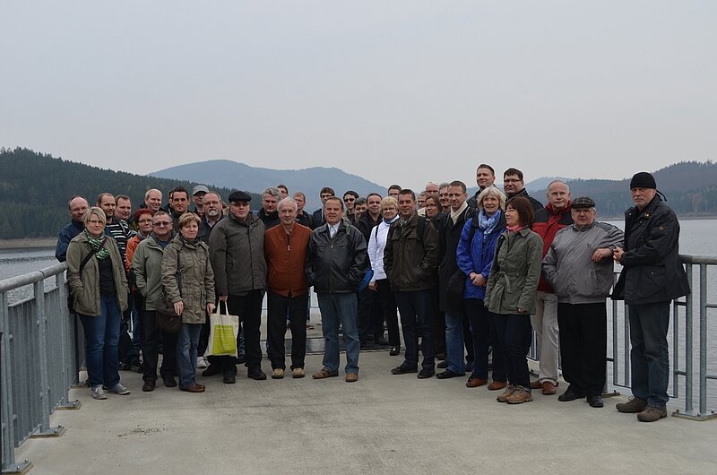 Am 22.04.2013 startete der VDV-Landesverband Sachsen-Anhalt zur Granetalsperre bei Goslar. Dieses Mal wurde eine rekordverdächtige Beteiligung von 43 Teilnehmern erreicht. Der Start verlief planmäßig, jedoch machte eine niedrige Eisenbahnunterführung – die nicht umfahren werden konnte - etwa 2km vor dem ersten Ziel einen Strich durch die Zeitplanung. So wurde das erste Ziel – das Wasserwerk Granetalsperre – nur zu Fuß erreicht. Die Führung durch das Wasserwerk musste dann leider etwas gekürzt werden. Aber es konnte die Schaltzentrale bestaunt werden und ein kurzer Blick in die Filterhalle und andere Anlagen der Trinkwasseraufbereitung geworfen werden. Dipl.-Ing. Bernd Scharlemann von den Harzwasserwerken (Abteilung Liegenschaften und Vermessung) hielt den einführenden Vortrag in dem die Harzwasserwerke und die vielfältigen Arbeiten zum Monitoring der Talsperren vorgestellt wurden. Das Verbundsystem der Harzwasserwerke reicht bis Bremen hinauf. Die Granetalsperre ist mit ca. 46 Mio. m3 Fassungsvermögen eine der Größten der Harzwasserwerke GmbH. Es gibt kein Betonsperrwerk - der Erdwall ist an der Wasserseite durch eine Bitumenschicht geschützt.