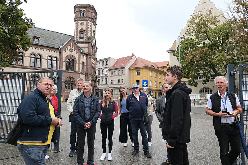 Um 9.30 Uhr begann das Programm für die VDV-Mitglieder der Bezirke Dessau und Halle mit einer Stadtführung zum Thema: „Die Bestehorns – eine Industriellenfamilie“. Heinrich Christian Bestehorn (1831 bis 1907) war wohl das, was wir heute ein „self-made-man“ nennen würden. Ein Papierwarenfabrikant mit dem richtigen Gespür für Gelegenheiten und der entsprechenden Weitsicht. Seinerzeit war es üblich das Auszubildende und Gehilfen in Ihrer Freizeit die Papiertüten, die in den Materialwarengeschäften gebraucht wurden, selbst herstellen mussten. Damit waren natürlich „zeitraubende und verdrießliche“ Unannehmlichkeiten verbunden. Die einfache Idee von einer fabrikmäßigen Massenanfertigung von geklebten „Düten“ („Tüten“ - Anm. d. Red.) stieß anfangs auf spöttisches Lächeln und mancher fragte sich, wer wohl so viele Tüten kaufen sollte und würde, dass „ein Mensch sich und seine Familie von dem Gewinn ernähren“ könnte. Die Weitsicht des Unternehmers beflügelte jedoch das Unternehmen. Nach Kriegsende und der Enteignung durch die sowjetischen Besatzer wurde die Fabrik als volkseigener Betrieb Optima weitergeführt. Die Wende brachte das Aus für die Papierdruckerei. Danach stand die Fabrik, die heute Bildungszentrum ist, erstmal leer. Ihr Vermögen nutzte die Familie um Aschersleben zu bereichern. So stifteten sie einige Bauvorhaben, die ohne ihr Geld nicht möglich gewesen wären. Unter vielen anderen Projekten in den Jahren 1906/08 das Bestehornhaus (6. Januar 1906 – Stiftung von Heinrich Christian sowie Otto und Richard Bestehorn an die Stadt Aschersleben von 120.000 Mark zur Errichtung eines „Jugend- und Volkshauses“, 22. Oktober 1908 – Eröffnung). Die spannende Geschichte der Familie Bestehorn ist unter www.qr-erinnerung.de/de/familie-bestehorn.html nachzulesen.