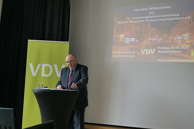 Ab 15 Uhr begann dann die 18. Landesmitgliederversammlung des VDV-Landesverbandes Sachsen-Anhalt. Aus terminlichen Gründen konnte leider niemand aus dem VDV-Präsidium teilnehmen. Der Ehrenlandesvorsitzende Karl-Heinz Winkler war leider auch verhindert. Um so mehr freute es den Landesvorsitzenden Matthias Kaden ebenfalls Landesvorsitzender aus Sachsen als Ehrengast begrüßen zu können. „Er eilte hier zu uns aus Sachsen ohne Anhalt“ kommentierte der Landesvorsitzende aus Sachsen-Anhalt erfreut den Besuch in seiner Eröffnungsrede. Matthias Kaden sprach ein kurzes Grußwort in dem er auf die traditionelle gute Zusammenarbeit der beiden VDV-Landesverbände einging.