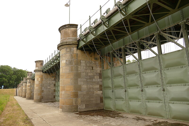 Das Pretziener Wehr in der Nähe des kleinen Ortes Pretzien nordöstlich von Schönebeck war am 18.06.2015 der Veranstaltungsort des Tages der Ingenieure in Sachsen - Anhalt. Das in der Region sehr bekannte Bauwerk erhielt von der Bundesingenieurkammer die Ehrung als "Historisches Wahrzeichen der Ingenieurbaukunst in Deutschland" verliehen. Damit reiht sich das Wehr in eine Folge berühmter Bauwerke in ganz Deutschland ein. Diese Auszeichnung, die auch mit der Veröffentlichung einer Publikation innerhalb der gleichnamigen Schriftenreihe verbunden ist, verleiht die Bundesingenieurkammer bereits seit 2007 an herausragende Leistungen vergangener Ingenieur-Generationen. Das Pretziener Wehr ist die erste ingenieurtechnische Meisterleistung in Sachsen-Anhalt, die diese bundesweit beachtete Ehrung erfährt. Das Bauwerk wurde 1871-75 errichtet und in seiner Geschichte im Schnitt etwa alle 2 Jahre ‚gezogen‘. Das ‚Ziehen‘ des Pretziener Wehrs öffnet bei Elbehochwasser den Umflutkanal und entlastet Magdeburg und die nähere Umgebung. Im Festakt sprachen der Präsident der Bundesingenieurkammer Herr Dipl.-Ing. Hans-Ullrich Kammeyer und der Präsident der Ingenieurkammer Sachsen-Anhalt Dipl.-Ing. Jörg Hermann sowie weitere Ehrengäste. Etwa 300 Gäste waren im eigens für diesen Anlass errichteten Festzelt versammelt. Ebenso wurde eine kleine begleitende Fachausstellung etabliert an der auch unser VDV-Landesverband beteiligt war. Der erste Teil der Veranstaltung endete mit der feierlichen Enthüllung der Ehrentafel am Bauwerk selbst. Nach dem offiziellen Festakt folgten ein Empfang und anschließend das Schauziehen und die Besichtigung des Pretziener Wehrs. Am Nachmittag veranstaltete der VDI Landesverband Sachsen-Anhalt gemeinsam mit der Ingenieurkammer Sachsen-Anhalt und dem Landesbetrieb für Hochwasserschutz und Wasserwirtschaft Sachsen-Anhalt das VDI-Forum 2015: Wissenschaft und Wirtschaft "Ingenieurdienstleistungen für Hochwasserschutz und Vernässung".
