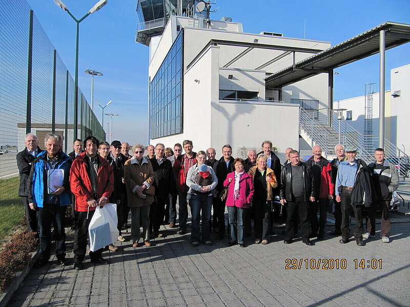 Die "Bezirksgruppe Dresden - Ostsachen" im "Verband Deutscher Vermessungsingenieure e.V.", hatte seine Mitglieder und die Mitglieder des befreundeten Berufsverbandes „Deutscher Verein für Vermessungswesen e.V. – Gesellschaft für Geodäsie, Geoinformation und Landmanagement“ Sachsen zur Herbstexkursion, am 29.10.2010, auf das Gelände der Deutschen Flugsicherung in Dresden und anschließend auf das Betriebsgelände des Flughafens Dresden eingeladen.