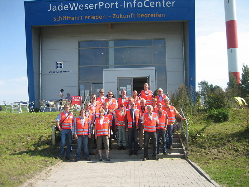 Der Landesverband hatte am 26.08.2011 zur Besichtigung der Baustelle des Jade-Weser-Ports nach Wilhelmshaven eingeladen. Zur Einführung referierte Hans-Jürgen Fritsch vom Betreiber Eurogate über den Bau der Infra- und Suprastruktur des JWP und den Betrieb des EUROGATE Wilhelmshaven. Die zahlreiche Kolleginnen und Kollegen informierten sich anschließend im Info Center über den größten deutschen Tiefwasserhafen und konnten sich bei einer geführten Rundfahrt über die Baustelle selbst einen Eindruck über den Umfang der Bauarbeiten machen.