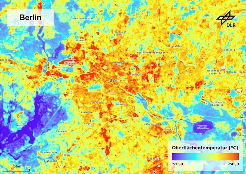 Erstmals liefert das Deutsche Zentrum für Luft- und Raumfahrt (DLR) eine systematische Analyse der Oberflächentemperatur-Verteilung für Städte mit mehr als 100.000 Einwohnern in Deutschland. Dabei zeigt sich, dass die Versiegelung die Hitzebelastung in unseren Städten verstärkt: Gerade in hochversiegelten, dicht bebauten Stadtlagen kommt es zu erhöhten Temperaturen. Für die ausgewählten mehr als 70 Großstädte, darunter Berlin, München, Frankfurt, Stuttgart, Köln und Hamburg, ist dies nun…