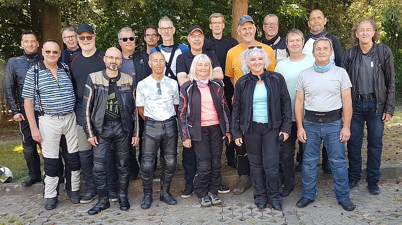 Insgesamt starteten 18 Motorräder um 10:00 Uhr nach der obligatorischen Einweisung und den organisatorischen Hinweisen. Die Tour führte mit einem Zwischenhalt am Gästehaus der Bundesregierung in Meseberg zunächst bis nach Rheinsberg mit Besichtigung der Marina am Hafendorf. Über Prebelow, Schleuse Diemitz und Fleether Mühle wurde Mirow am Rande des Müritz-Nationalparks angesteuert, wo auch das Mittagessen auf der Seeterrasse des Strandhotelrestaurants auf die GEObiker wartete.