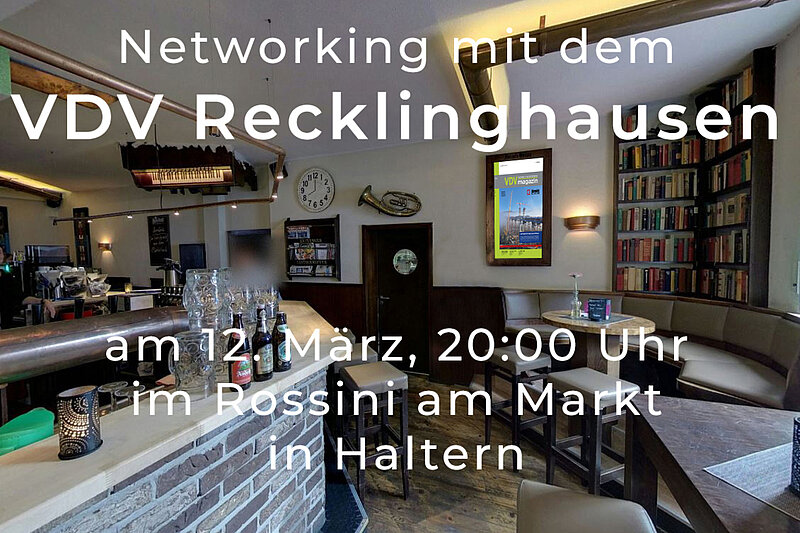 Fachthemen am Stammtisch gibt's am 12. März 2026 ab 20.00 Uhr im "Marktcafé Rossini", Markt 6, 45721 Haltern am See.