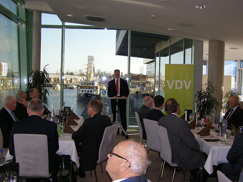 Last but not least begrüßte er den VDV- und ZBI-Präsidenten, Dipl.-Ing. Wilfried Grunau sowie den VDV-Geschäftsführer, Dipl.-Ing. Burkhard Kreuter, den VDV-Vizepräsidenten Dipl.-Ing. Ullrich Wille und zu guter Letzt den ganz aus Worms angereisten VDVmagazinPlus Redakteur Dipl.-Ing. Willibald Dores.