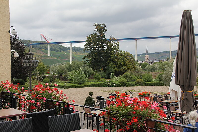 Die Stahlbalkenbrücke selbst ist 1.700 Meter lang, ruht auf 10 Betonpfeilern und wurde nach 13 Verschubphasen in bis zu 160 Meter Höhe nach fünf Jahren „geschlossen“. Eine Herausforderung an Mensch, Technik und Material – eine Präzisionsarbeit bei Zuschnitt und Transport der einzelnen vorgefertigten Stahlsegmente, bei Einbau und Verschweißen der Hohlkästen auf dem Vormontageplatz „Hunsrück“ zu einem Brückenschuss und beim phasenweisen Vorschub des Stahlüberbaus mit Hilfe eines rund 80 Meter hohen Pylons auf dem Überbau der Brücke.