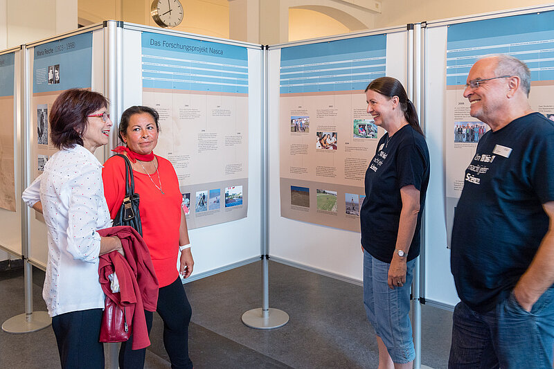 Zweites Event an diesem Tag war die nunmehr bereits 16. Dresdner Lange Nacht der Wissenschaften (LNDW). Unter dem Motto „Von 18 bis 1 macht jeder Science!“ konnten die Besucherinnen und Besucher den Wissenschaftsstandort Dresden erleben. Wissenswertes, Unterhaltsames und manch Erstaunliches aus Forschung und Lehre (wie es in der Pressemitteilung der HTW heißt) wurden in insgesamt 730 Programmpunkten präsentiert. Dazu gehörten an der HTW Dresden auch Beiträge aus unserer Fakultät. Prof. Teichert und Frau Richter, M.Sc., stellten in ihren beiden spannenden Vorträgen und in einer Ausstellung „Das Nascaprojekt - 22 Jahre deutsch-tschechische Forschung in Peru“ (Abb. 5) die aktuelle Entwicklung beim „Abenteuer Nasca“ vor. In den Vorträgen wurden die Zuhörer einerseits auf die Spuren von Maria Reiche geführt und andererseits mit den Herausforderungen bei den Vermessungsarbeiten in der Wüste Perus vertraut gemacht. Die LNDW war dank der lauen Frühsommernacht gut besucht.