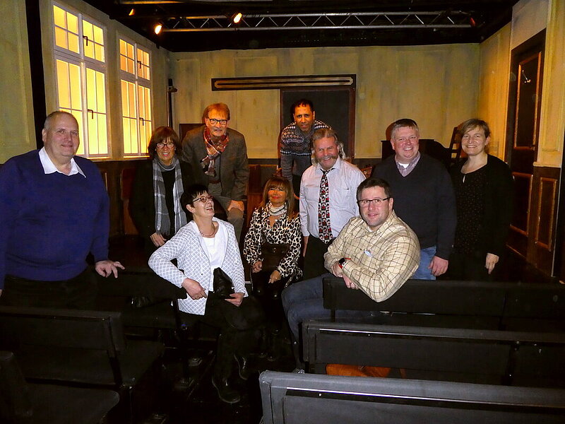 Doch bevor das herzhafte Lachen beginnen konnte, traf man sich in einem Wuppertaler Restaurant, um sich für den Abend zu stärken und in geselliger Runde über die Bezirksarbeit zu diskutieren. Dies konnte auch in einer kleinen Runde geschehen, da sehr aktive Mitglieder beisammen saßen. Die Programmplanung muss gut gewesen sein, denn erfreulicherweise hat aus dem Nachbarbezirk Dortmund Guido Baumann mit Ehefrau teilgenommen.