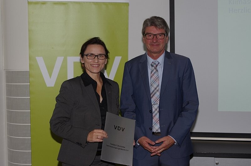 Nach dem interessanten Vortrag bedankte sich der Landesvorsitzende Frank Pöhlmann bei Prof. Dr. Martina Klärle. Als Überaschung konnte er ihr noch die Urkunde mit Anstecknadel für die 25-jährige Mitgliedschaft im VDV überreichen.
