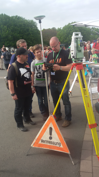 Einerseits wurden auf Grundlage der Plattform Arbeitsplatz Erde (www.arbeitsplatz-erde.de) die vielfältigen beruflichen Möglichkeiten im Bereich der geodätischen Berufe aufgezeigt, andererseits wurden der Beruf des Vermessungsingenieurs und die eingesetzte Technik der Öffentlichkeit präsentiert, was bei den Anhängern dieses technischen Hobbys auf breites Interesse stieß. Durch den spielerischen Umgang mit Geodaten sowie dem Einsatz von GPS-Geräten in der Freizeit war der Zuspruch wesentlich größer, als man es auf einer allgemeinen Messe zur Berufsinformation erwarten kann. Nebenbei konnten sogar Lösungsansätze zu Katasterfragen gezeigt und Ansprechpartner für die weitere Vorgehensweise benannt werden. Selbst das Thema Open Data konnte dabei nicht nur mit Fachleuten, sondern auch mit der interessierten Öffentlichkeit im Ansatz besprochen werden.