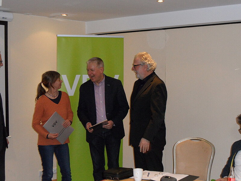 Für seine langjährige Tätigkeit im Vorstand des Landesverbandes wurde der Kollege Uwe Marske geehrt. Nach 43-jähriger Mitgliedschaft und 28-jähriger Tätigkeit im Landesvorstand sowie Teilnahme an vielen Bundeskongressen beendet Uwe seine Vorstandsarbeit. Als kleines Dankeschön für die langjährige Tätigkeit wird ihm vom Landesvorsitzenden ein Präsent überreicht