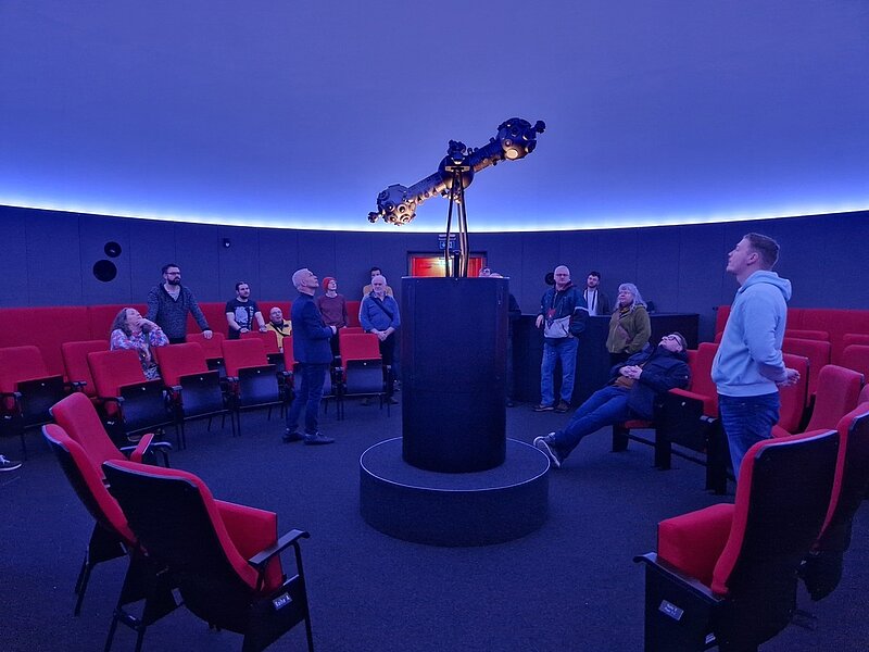 Am 26.01.2024 fand der Geodätenstammtisch des VDV-Bezirkes Halle für das Jahr 2023 statt. 20 Teilnehmer hatten sich angemeldet und nahmen am kulturellen Highlight, dem Besuch des neuen Planetariums von Halle, teil. Auch der wolkenbruchartige Regenschauer konnte den pünktlichen Beginn der Führung nicht verhindern. Durch das neu eröffnete Haus wurden wir von einem Mitglied des Fördervereines Planetarium Halle geführt.