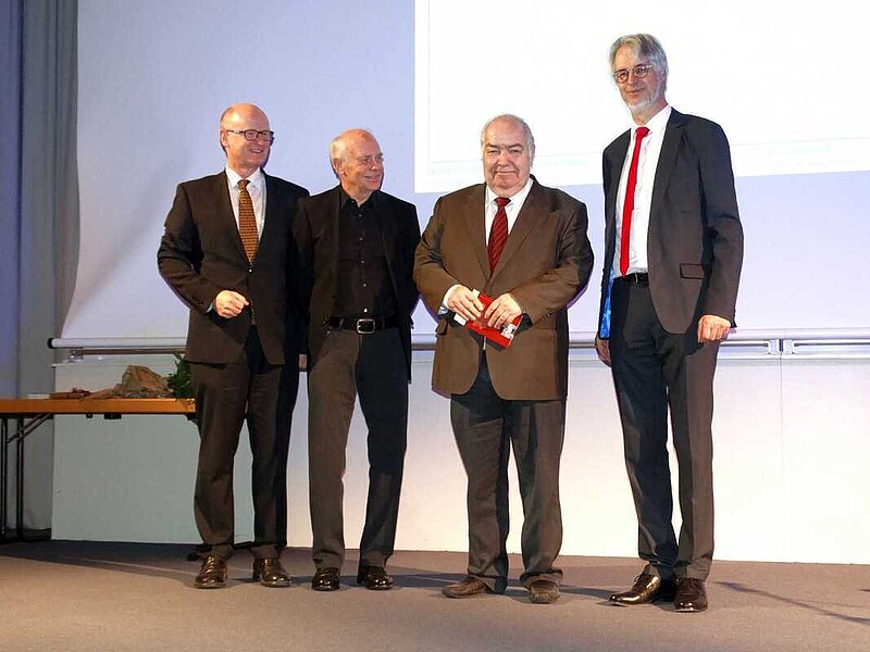 Begleitet von Vorträgen ehemaliger Absolventen mit Einblicken in deren berufliche Entwicklung erfolgte abschließend die Verabschiedung von Prof. Dietrich Ribbert nach 42 Jahren Lehrtätigkeit in der Wertermittlung, Laudator war Freund und ebenfalls „Westfale“ Prof. Karl-Heinz Kötter. Zum Nachtrunk und geselligem Austausch fand man sich danach in der als Festraum umgenutzten ehemaligen Maschinenbauhalle ein, Bilder erhielten wir freundlicherweise von Frau Prof. Dr. Ripke.