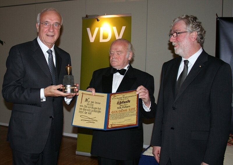 Der Journalist und ehemalige WDR-Intendant Fritz Pleitgen ist am 16. Oktober 2009 vom VDV mit dem GOLDENEN LOT 2009 geehrt worden. Pleitgen, der vielen Fernsehzuschauern u.a. auch durch den „ARD-Presseclub“ bekannt ist, war langjähriger ARD-Korrespondent, Chefredakteur, Hörfunkdirektor und zwölf Jahre Intendant des WDR. Allein achtzehn Jahre berichtete er für das Erste Deutsche Fernsehen und seine Dritten Programme aus Moskau, Ost-Berlin, Washington und New York. 1988 übernahm Fritz Pleitgen das Amt des Chefredakteurs in der WDR-Fernsehdirektion. Er moderierte das Fernsehmagazin „Weltspiegel“ und eine Reihe von ARD-Brennpunkten und Sondersendungen, vor allem über den Zusammenbruch der DDR, die deutsche Vereinigung und den Zerfall der Sowjetunion.